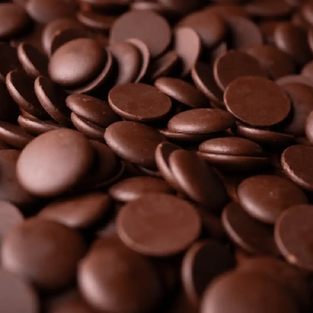 Dark couverture / ⁠Buttons & Drops is a high-quality chocolate for professionals, made with a higher percentage of cocoa butter and solids than regular chocolate, which gives it a rich, intense flavor and a smooth, glossy finish when tempered
