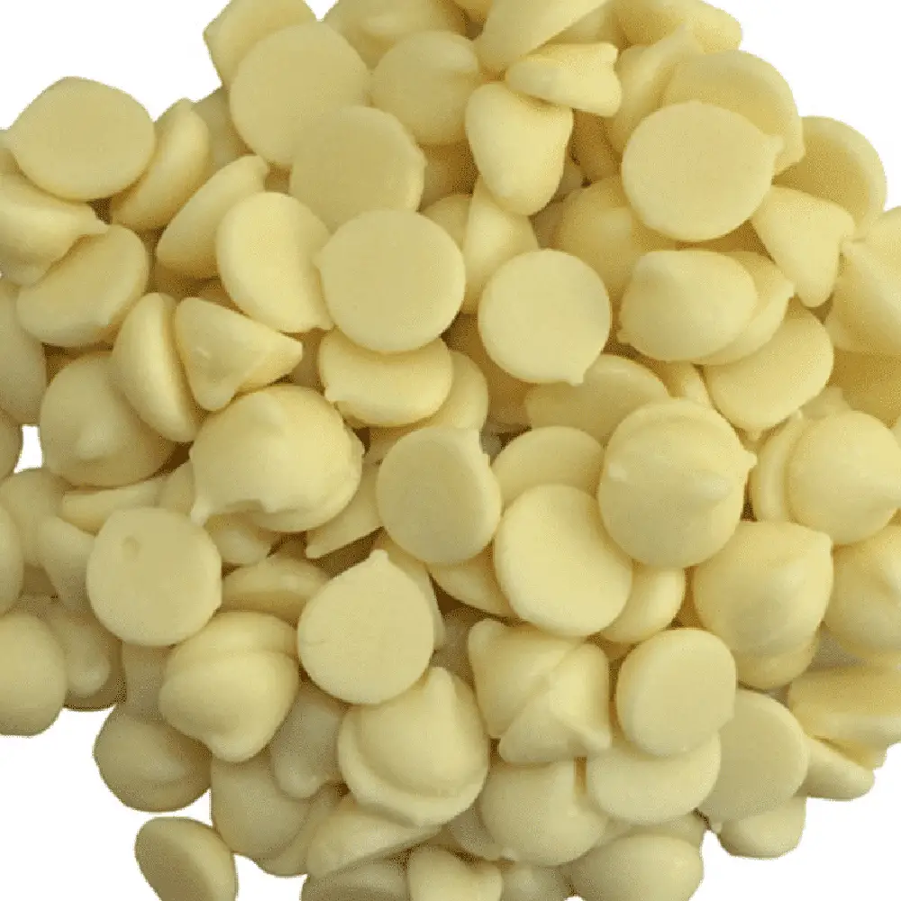 White chocolate couverture /⁠ Buttons & Drops is a high-quality white chocolate made with cocoa butter, milk solids, and sugar, known for its glossy finish, rich flavor, and smooth texture. It is used by professionals for tasks like making chocolate bars, truffles, ganache, and coating desserts, as it has a high cocoa butter content which creates a superior melt-in-your-mouth experience. Unlike traditional white chocolate chips or compound chocolate (which uses cocoa powder and vegetable oil), couverture is more fluid and is tempered for a perfect finish.